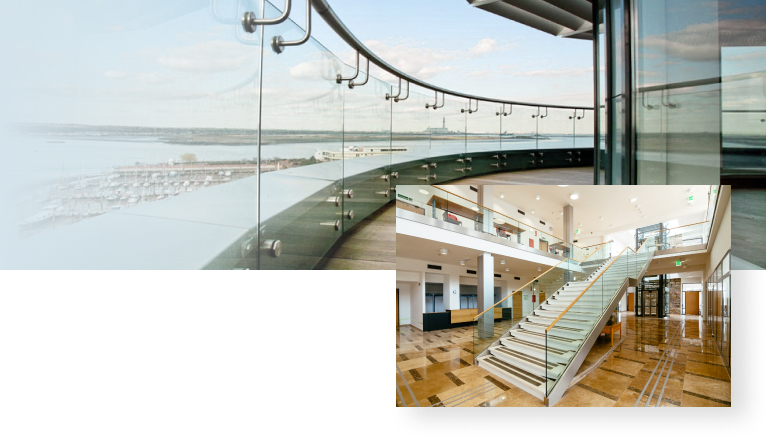 - суцільноскляні – цілісний фрагмент скла, який кріпиться до опор, встановленим по торцях сходового маршу;