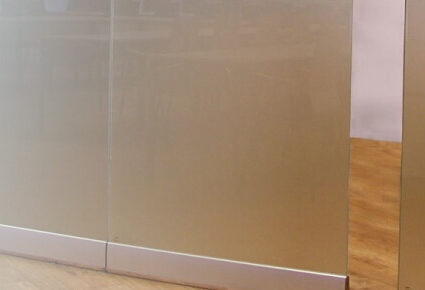 В офісних приміщеннях перегородки з матового скла поділяють простір на функціональні сектора. Вони застосовуються в лікарнях, закладах громадського харчування, освітніх установах.