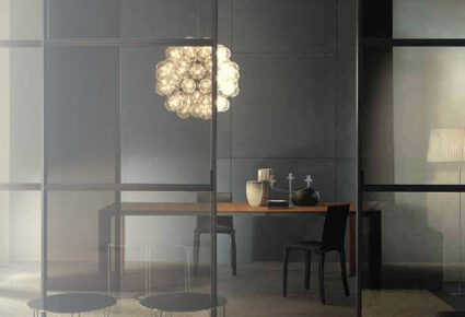 Скляні перегородки в кімнаті – чудове рішення для квартир-студій. Також вони доречні в офісних приміщеннях. З такою конструкцією можна виграти площа і зберегти природне світло.