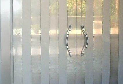 Декору скляних конструкцій приділяється особлива увага. Не завжди зручно, щоб двері були прозорими. Сховатися від сторонніх поглядів допоможе матування скла в суцільноскляних вхідних групах. Це один з найпоширеніших способів декорування, в результаті якого скло втрачає свою прозорість. Матового ефекту можна досягти шляхом впливу на основу хімічних складів або використовуючи піскоструминну обробку. Із застосуванням сучасних технологій можна зробити суцільне матування поверхні або часткове. Матове скло може мати різну ступінь прозорості, відтінок або бути доповнено візерунком. Для створення малюнка, логотипу або напису застосовуються трафарети, завдяки яким вдається нанести чітке зображення.